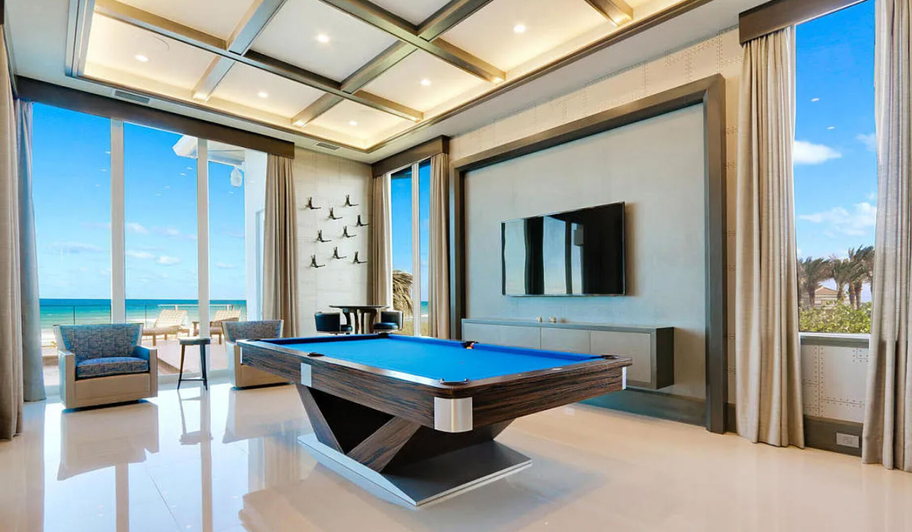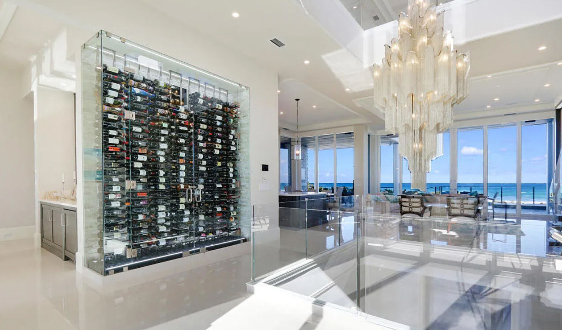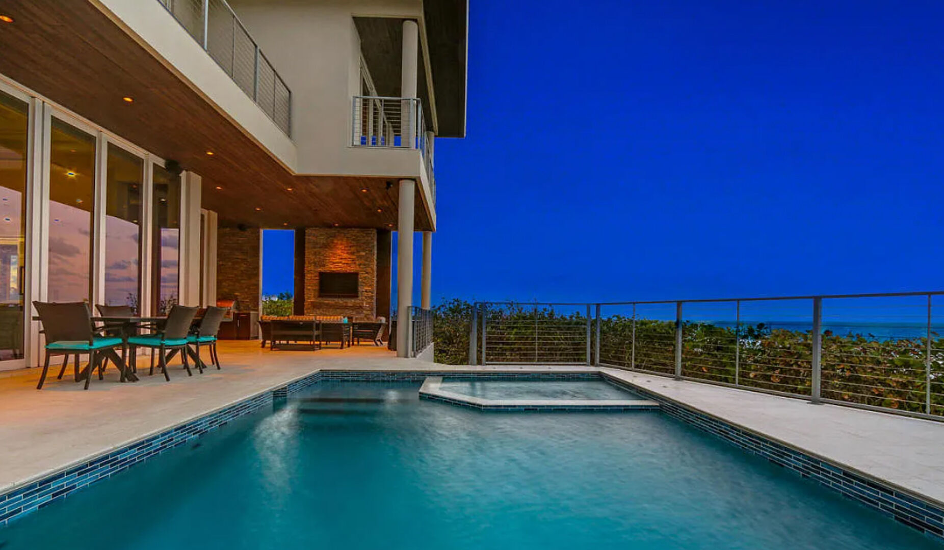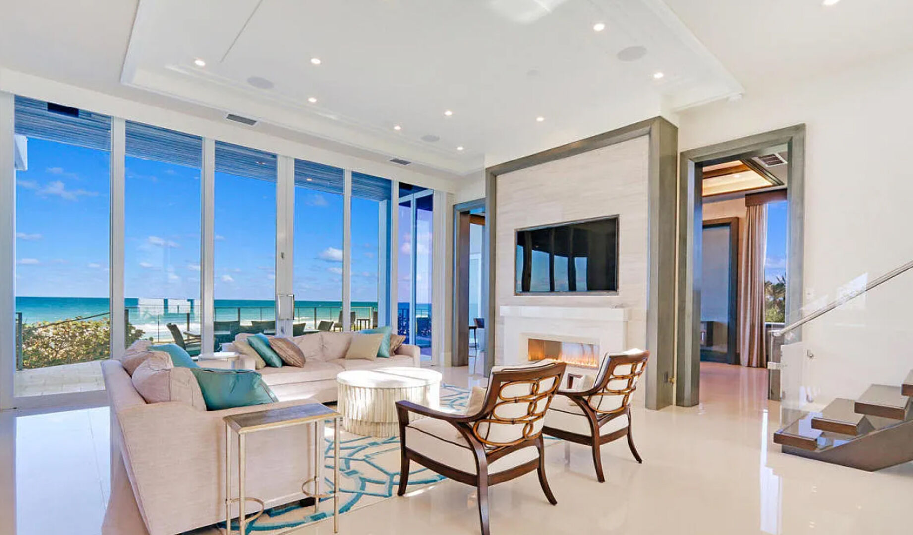 Enter the gates of Diamond Sands where this 4 bedroom 4.5 bath oceanfront home awaits. You will be captivated by the panoramic east to west views of the ocean & the Indian River Lagoon which makes this address a place of prominence & seclusion. Once inside you will experience this magnificent classic decor that meets modern design, accompanied by all you desire. Fully furnished with designer touches, a floating staircase with glass railings & 6 seat cinema room with an audio system and projector screen.