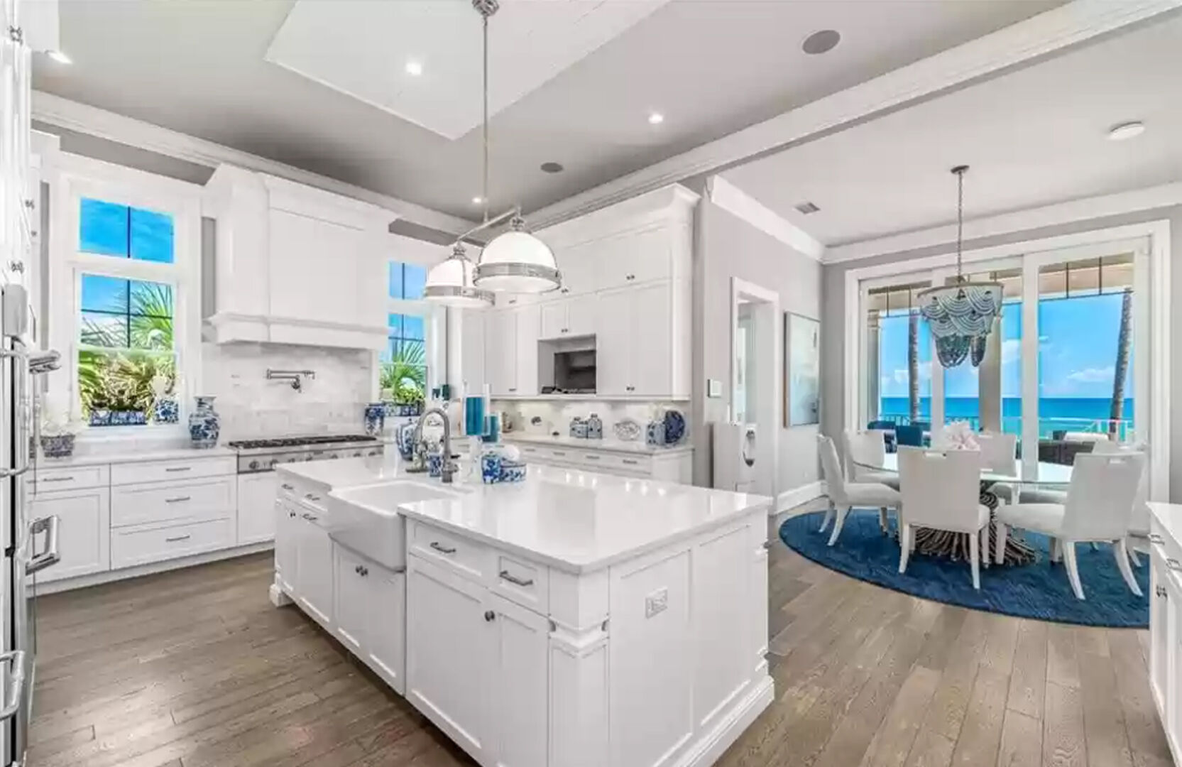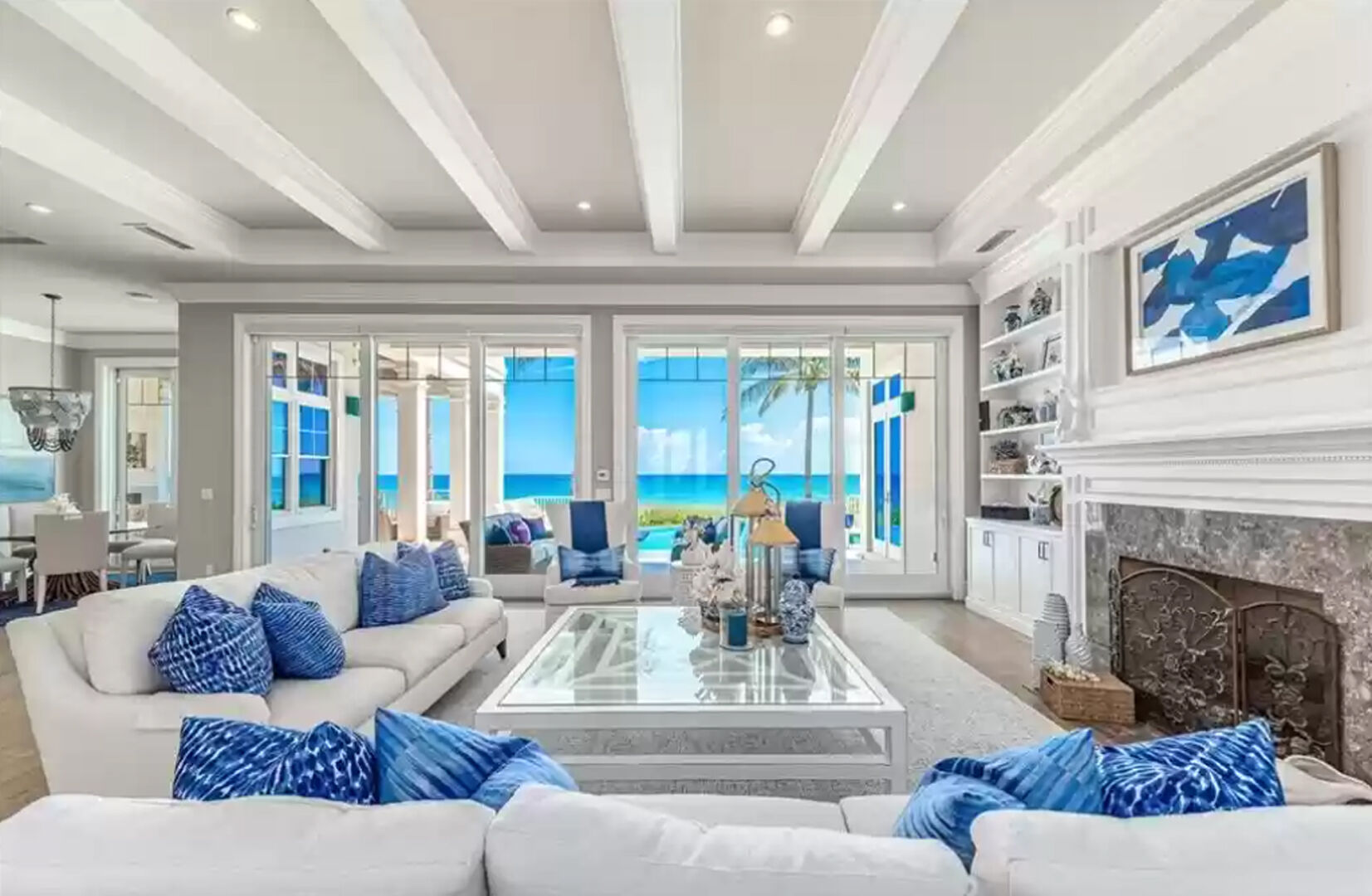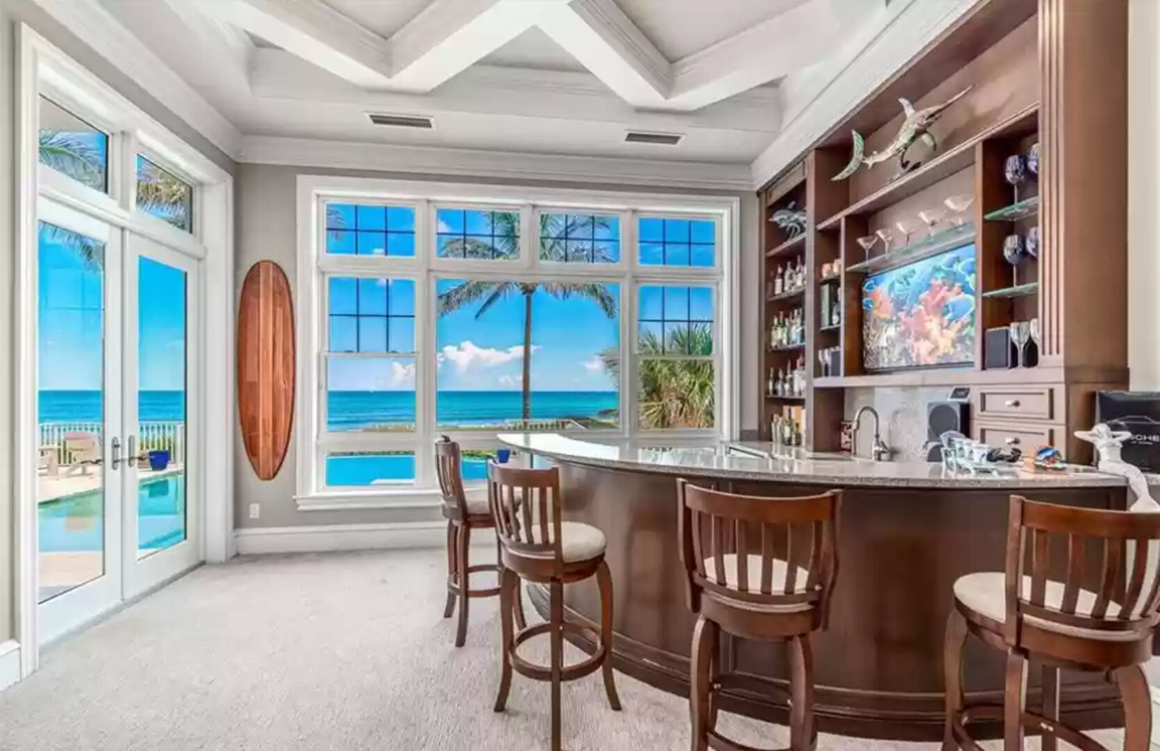 Discover absolute perfection with this incredible CUSTOM OCEANFRONT home with full panoramic views of the turquoise blue Atlantic Ocean as well as the intercoastal. With nearly 14,000 total sq ft, this near-commercial grade masterpiece is 3 floors of concrete, structural pilings, and an epicore composite metal deck with a concrete topping used for the floor slabs. This place is a structural fortress! Once inside this Coastal home, you will see expert craftsmanship in every direction which includes custom Millwork, high-end finishes, impact glass windows/doors, designer paint touches, gorgeous wood floors, custom cabinetry, and so much more. The outside Loggia is a relaxing oasis complete with wood beams, a summer kitchen, an outdoor fireplace, and incredible views of the ocean. An elevator runs from top to bottom of the home. Huge 6+ car garage with additional storage rooms. Brand new movie room just added! You can practically run every component of this SMART HOME from a phone or tablet…